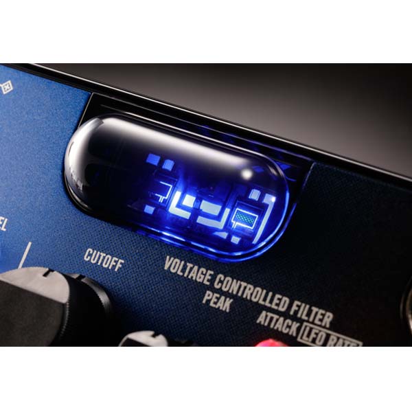 Nutubeに搭載された2系統の真空管回路のうち、1つをオシレーターに使用し、ノコギリ波または矩形波を生成。もう1つをサブ・オシレーターのドライブ回路に使用し、オシレーターの1オクターブ低音で音の厚みや暖かさを加えます。このオシレーターとサブ・オシレーターによって、真空管によるシンセ・サウンドの醍醐味を存分に味わえる回路構成となっています。