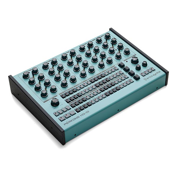 PĒRKONSは4つの多様なサウンドバリエーションを持つハイブリッドボイス(デジタルサウンドエンジン+オーバードライブ付きアナログマルチモードフィルター)と、これら4つのパーカッショントラックを一望し同時にコントロールできるシーケンサーを搭載していることが特徴です。