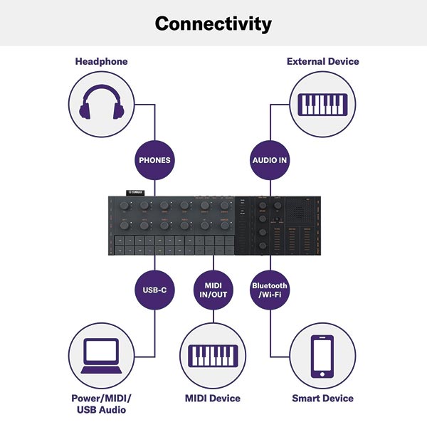 - Wi-Fi: SEQTRAKアプリを使ってコンテンツを管理したり演奏を録音できます。