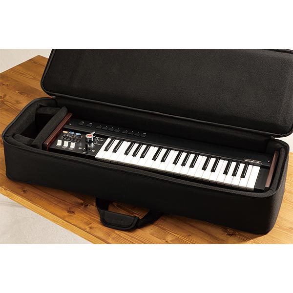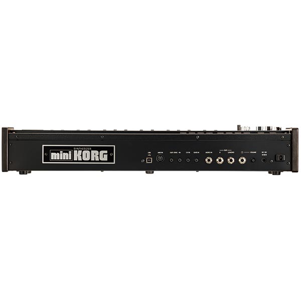 当時の技術では電子部品など個々のパーツ・サイズが大きかったこともあり、本体内にこれ以上の機能を入れるスペースが取れませんでした。技術の進歩により空いたスペースにはエフェクト=スプリング・リバーブ、またベンドやモジュレーションのためのジョイスティックを追加。表現の幅を広げるアフター・タッチ、さらに今の音楽シーンにも対応すべくアルペジエーター、USB端子、MIDI IN端子やCV/GATE IN端子を搭載しました。